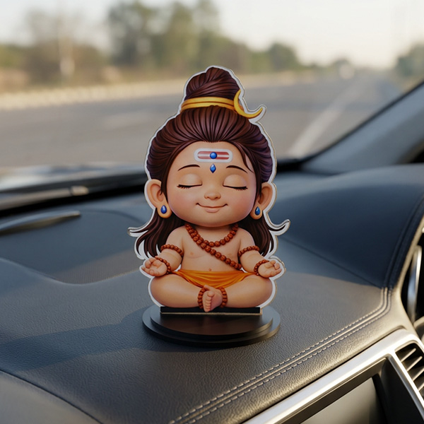 Baby Lord Shiva Idol | Cute Bal Shiva Murti for Home, Office & Car Dashboard, Two side Printed