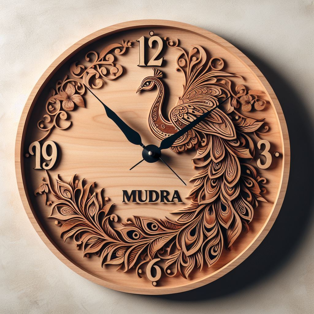 Rajwadi wooden wall clock with a peacock 1
